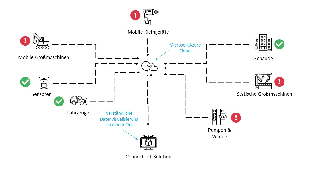 Unsere IoT Lösung digitalisiert Objekte, Anlagen, Maschinen und Prozesse und legt notwendige Daten frei, um Ihnen bei der Einführung neuer as a Service-Geschäftsmodelle zu helfen.